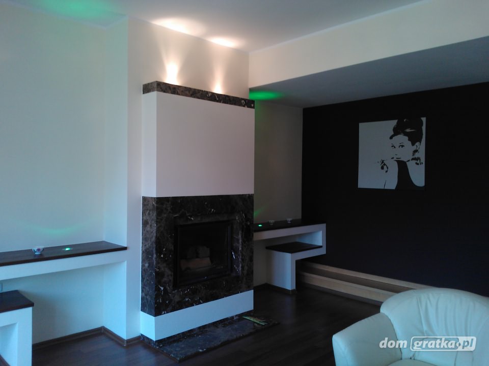 Ogrzewanie gazowe, kominek marmurowy z płaszczem wodnym podłączony do wszystkich kaloryferów.